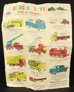 Inside, is the promotional Budgie Toys leaflet in colour, which shows the model range.