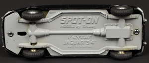 Issued during 1966, this 1:42 scale model of the Jaguar POLICE Car has a glossy black original finish with a detachable aerial and roof sign (complete). Complete number plates. Shiny spun wheels and well-shaped original tyres. Grey base.