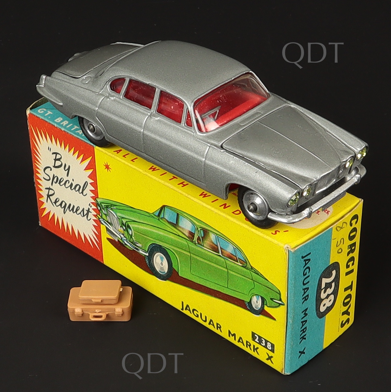 Jaguar Mark X by Corgi Toys, No. 238. Scarce colour (silver). Very near mint/boxed, with both original suitcases. From The Berlin Collection.