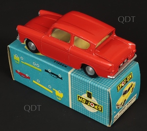Spot-on 213 Ford Anglia. Scarce issue in SCARLET RED, cream interior. Near mint plus/boxed (picture version), with leaflet. Nice box. From The Borders Collection. Starting bid £200. Please note that QDT apply 12.5% buyer's commission.