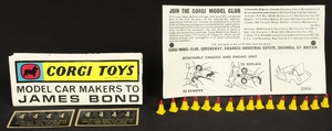 With accessories: two sets of unapplied racing numbers, original (opened) bag of 16 cones, Instructions for the detachable chassis/Corgi Club Membership Form & Corgi Promotional Brochure ‘Model Car makers to James Bond’.