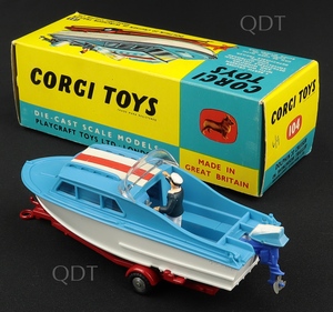 Dolphin 20 Cruiser on Wincheon Trailer by Corgi Toys, No. 104. Spun wheels. Very near mint/boxed, with packing. From The Pennsylvanian Collection.
