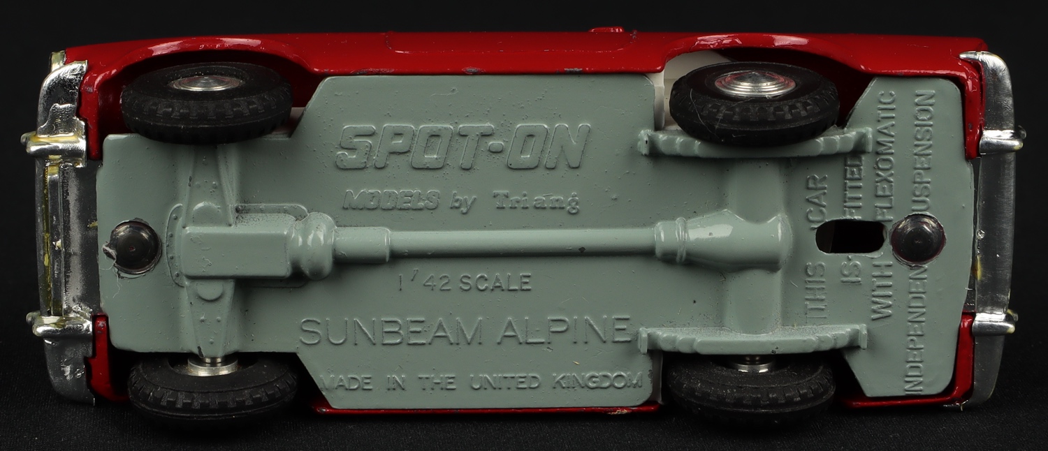 Sunbeam Alpine Convertible by Spot-on Models, No. 191. Deep red, WHITE interior. Scarce. Very near mint/boxed. From The Rickman Collection. Starting bid £200. Please note that QDT apply 12.5% buyer's commission.