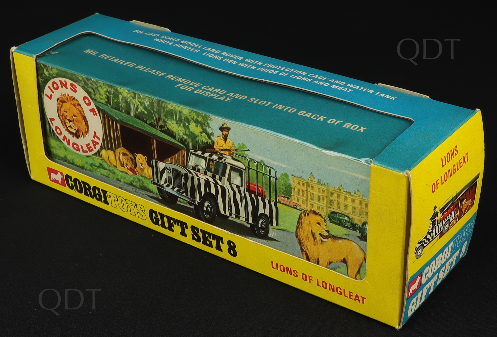 'Lions Of Longleat', Corgi Toys Gift Set, No. 8. Mint/boxed. Complete with DETACHABLE HEADER CARD. Sought-after EARLY ISSUE. With spun wheels. Starting bid £300. Please note that QDT apply 12.5% buyer's commission.