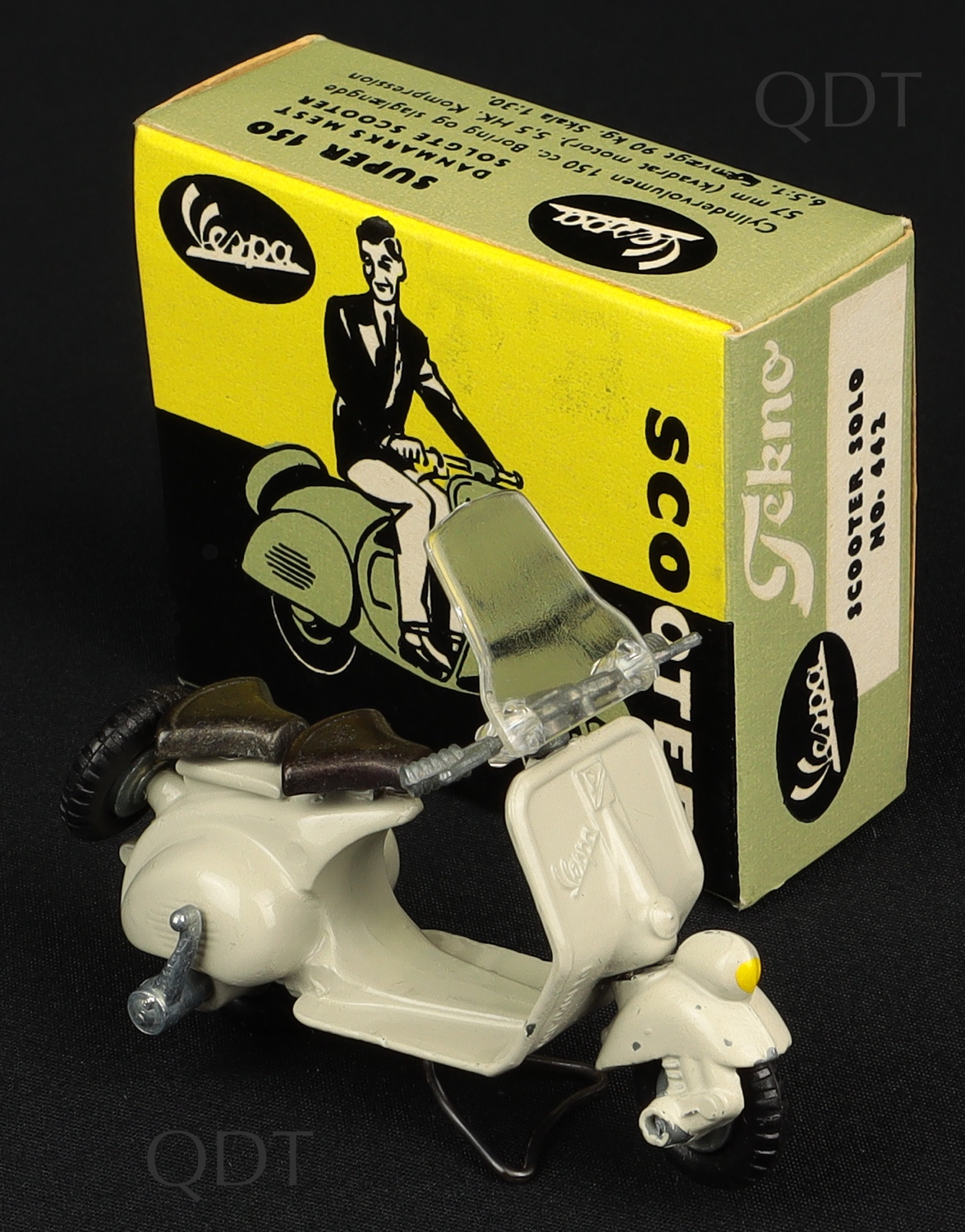 Tekno 442 Vespa Scooter Solo. Pale grey issue. Near mint plus/boxed. Scarce model from The QDT Vault. Starting bid £100. Please note that QDT apply 12.5% buyer's commission.