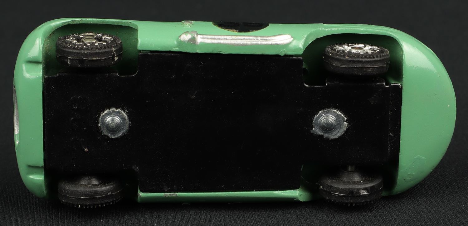 A very close to mint example finished in a distinctive suede green, with original silver details, original driver, and black steering wheel. One-piece tyres/wheels with silver details. Light blue plastic driver.