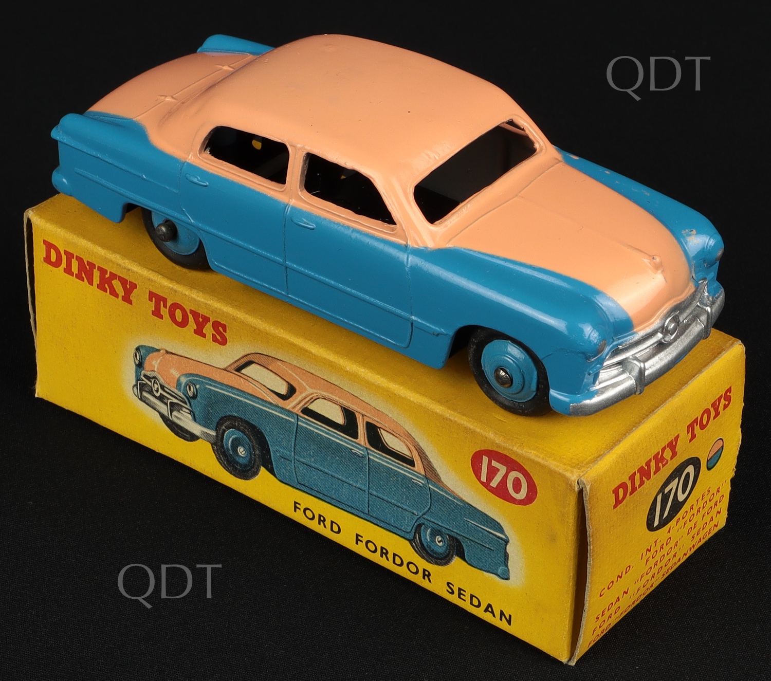Ford Fordor Sedan by Dinky Toys, No. 170. Blue and pink high line. Very near mint/boxed. Rare issue from The Berlin Collection.