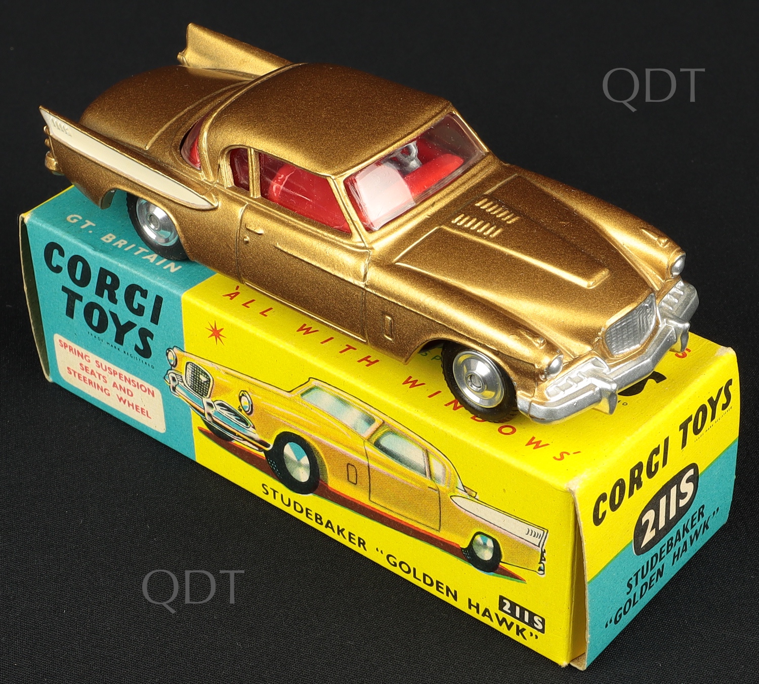 Studebaker "Golden Hawk" by Corgi Toys, No. 211S. Scarce gold-painted version. Very, very near mint/boxed. Fresh box! From The Berlin Collection.