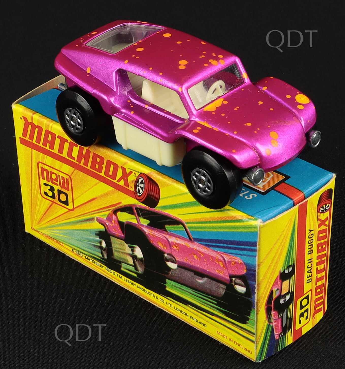 Beach Buggy by Matchbox Models, No. 30. White interior. Very, very near mint/boxed. From a large, stunning diverse collection with many items in old shop stock condition. Now leaving The QDT Vault.