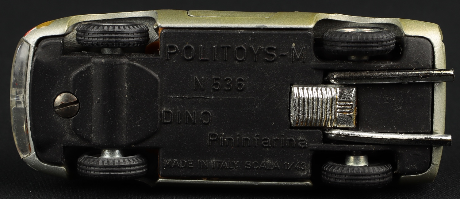 Ferrari Dino by Politoys Models, No. 536. CHAMPAGNE & SILVER. Very near mint/boxed, with packing foam. From The 25 Year Collection in California. Starting bid £100. Please note that QDT apply 12.5% buyer's commission.