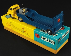 "Carrimore" Low Loader by Corgi Toys, No. 1100. Near mint plus/boxed. A scarce find with SHAPED SPUN wheels. Another First for QDT! With packing. QDT starting bid £150. Please note that QDT apply 12.5% buyer's commission.