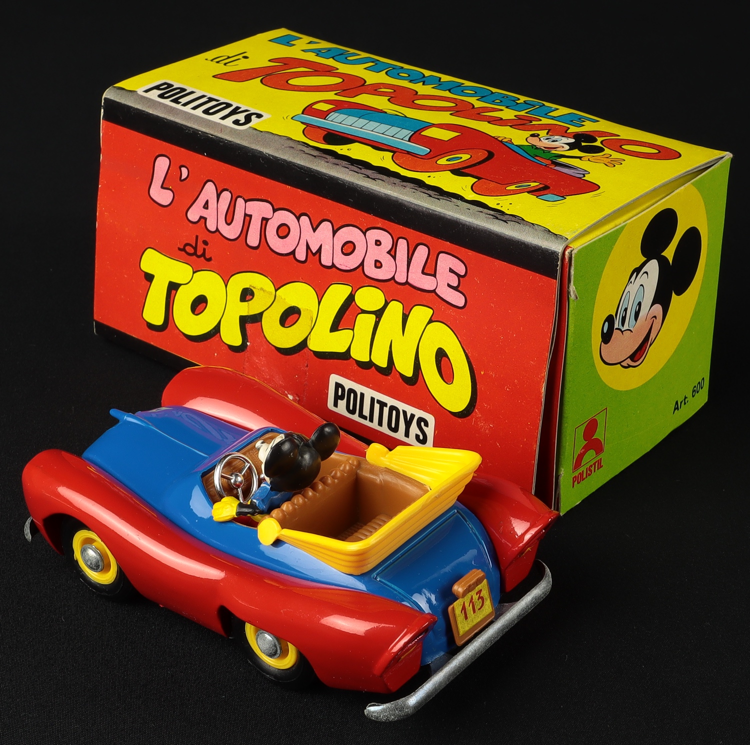 Topolino (Mickey Mouse) by Politoys (Polistil), No.600 Very near mint/boxed. Scarce. With Walt Disney Copyright. From The QDT Vault. QDT starting bid £100. Please note that QDT apply 12.5% buyer's commission.