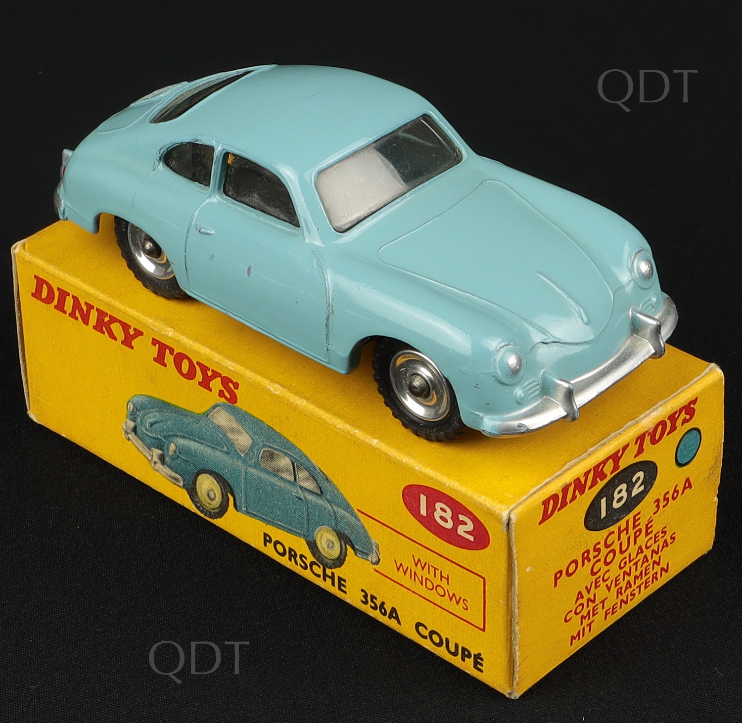 Dinky 182 Porsche 356A Coupe. Very near mint/boxed. Scarce late issue in pale blue with shaped spun wheels. From The Berlin Collection.