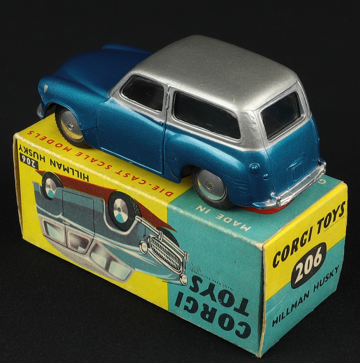 Hillman Husky by Corgi Toys, No. 206. Scarce metallic blue & silver issue. Very near mint/boxed (blue & yellow version). From The Pennsylvanian Collection.