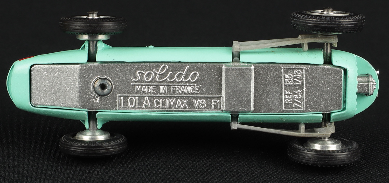 Lola V8 Climax F1 by Solido Models, No. 1. Mint green issue. Very, very near mint/boxed. From The QDT Vault. Starting bid £100. Please note that QDT apply 12.5% buyer's commission.