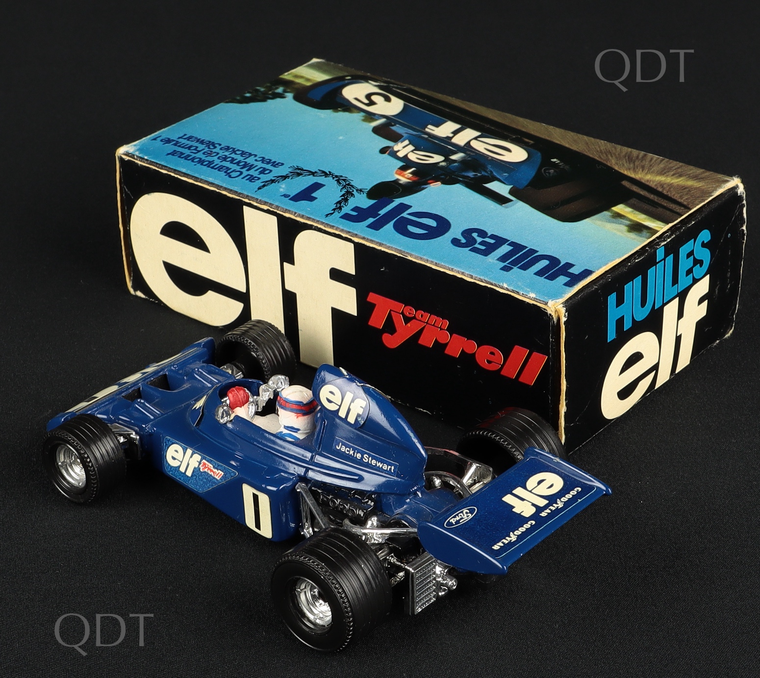 Elf Tyrrell-Ford F1. Jackie Stewart, by Corgi Toys, No. 158. Near mint plus/boxed. Promotional box issue. Scarce. From The Hastings Collection. Starting bid £100. Please note that QDT apply 12.5% buyer's commission.