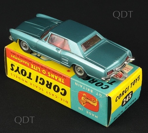 Buick Riviera by Corgi Toys, No. 245. Scarce metallic GREEN-BLUE issue with SPOKED WHEELS. Very near mint/boxed. From The Berlin Collection.