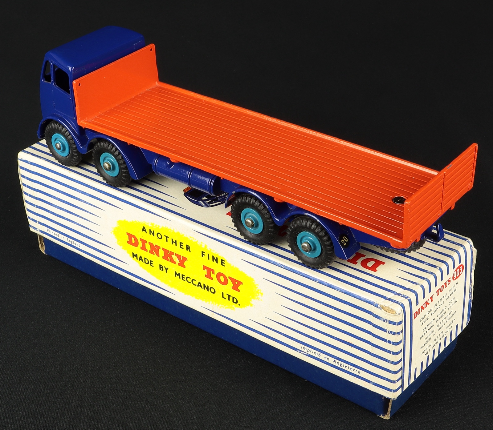 Foden Flat Truck with Tailboard by Dinky Toys, No. 903. 2nd type. Violet blue and bright orange version. Very near mint/boxed. From The Highgate Collection.