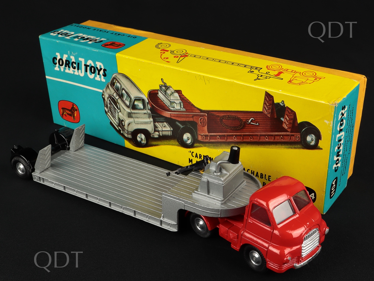 Bedford S "Carrimore" Detachable Axle Machinery Carrier by Corgi Toys, No. 1104. Scarlet, silver & black issue with shaped spun wheels. Very near mint/boxed, with card insert. From The Pennsylvanian Collection.