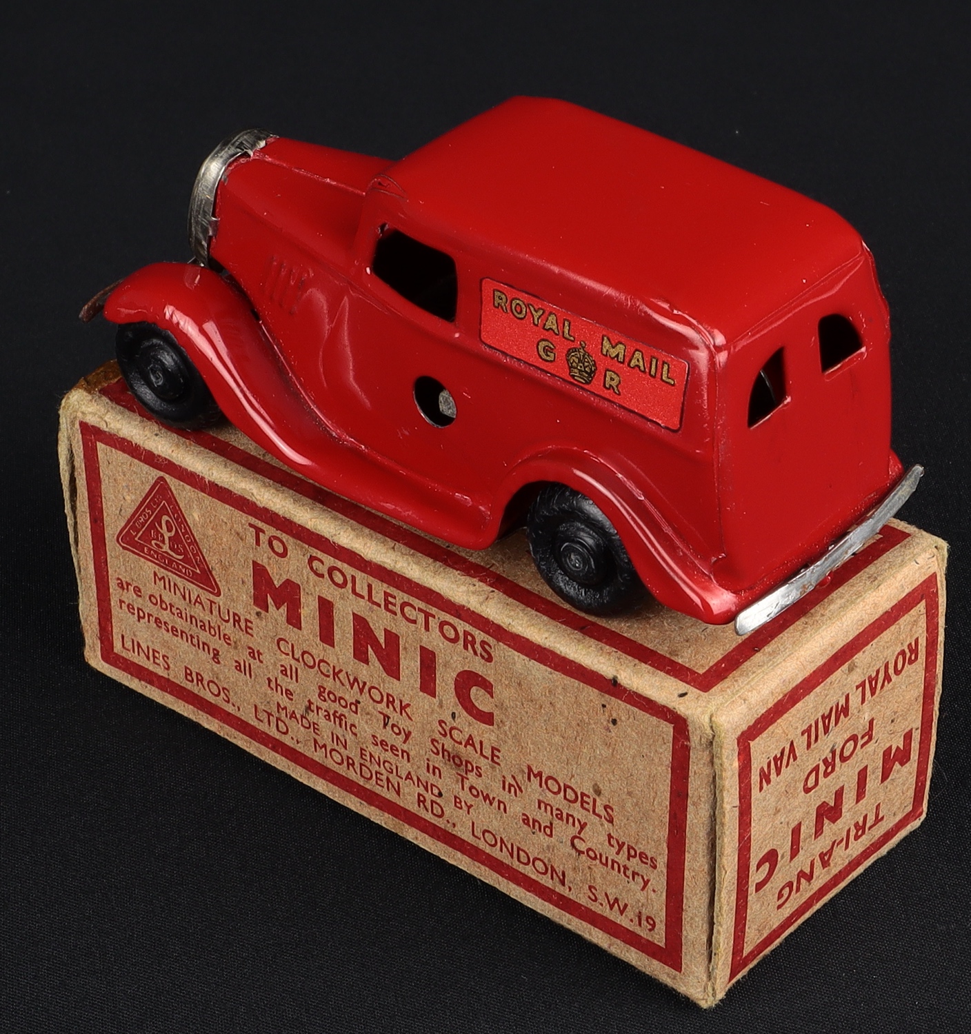Ford ROYAL MAIL Van by Minic Models, No. 3M. Working clockwork motor with key. Very near mint/boxed (wear). From The West Sussex Collection. Starting bid £100. Please note that QDT apply 12.5% buyer's commission.