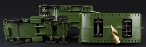 Bought out by Tri-ang in 1964, this prolific toymaker Raphael Lipkin produced many toys under the name of Pippin Toys. This large scale detailed plastic Mighty Antar Tank Transporter with Tank in deep military green impresses with its working winch, drop down ramp and comes complete with the original tools in packet, and Instruction Slip. Friction drive. Approx 35 cms. in length.