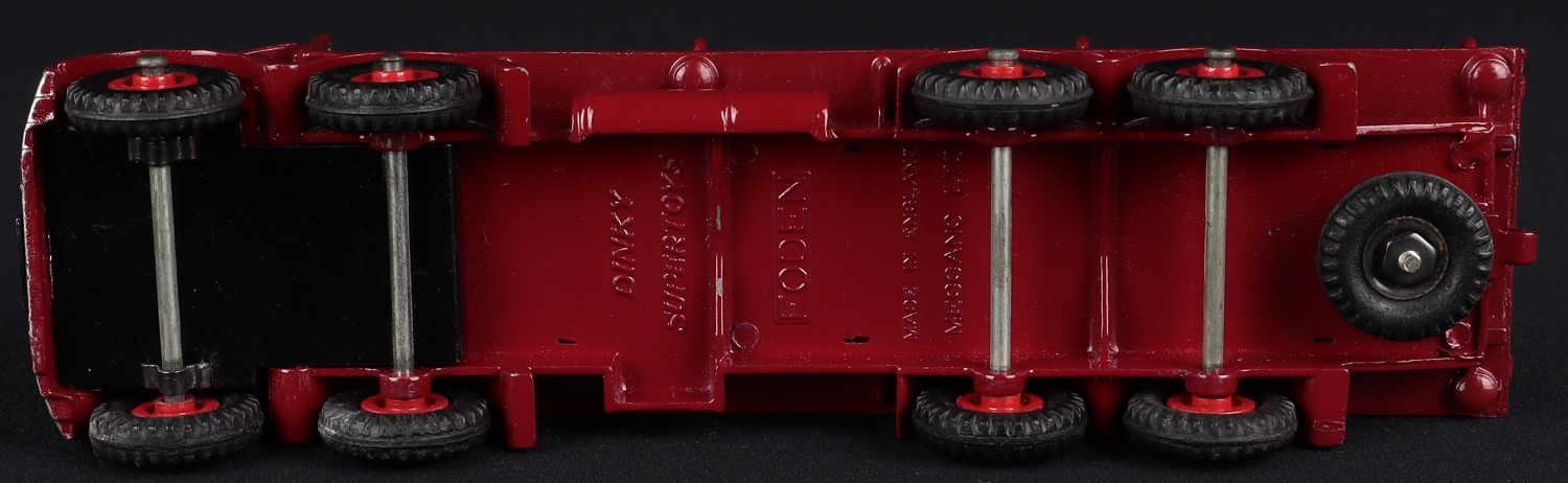 Foden Flat Truck with Chains by Dinky Toys, No. 905. Maroon with RED wheels. Very near mint/boxed. Another beautiful classic Dinky Toy from The Reference Collection. Starting bid £250. Please note that QDT apply 12.5% buyer's commission.