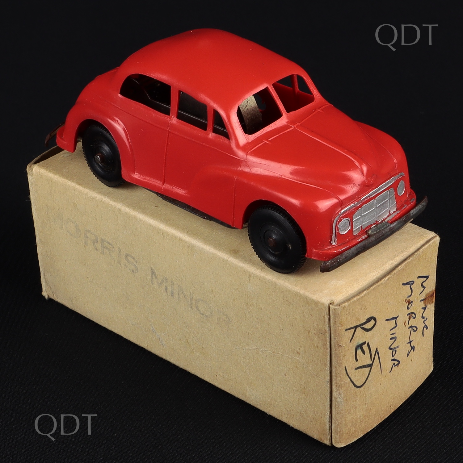 Morris Minor by Tri-ang Minic Models, No. 97M. Working clockwork motor. Near mint plus/boxed. Early post-war issue with plain box with MORRIS MINOR stamped. Scarce. From one of the finest Minic collections. Starting bid £100. Please note that QDT apply 12.5% buyer's commission.