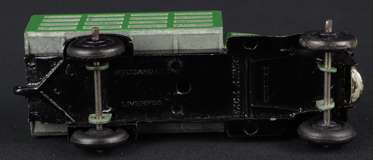 Issued during 1947, this Market Gardener’s Lorry has a green body, black chassis and hubs, type 3 plain closed chassis. Much of the plating remains on the radiator and headlights.