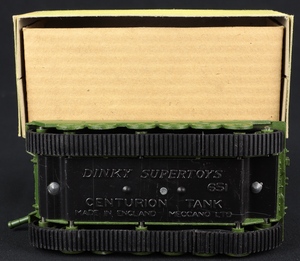 Centurion Tank by Dinky Toys, No. 651 . Gloss military green version. With rivetted MATTE base & PLASTIC rollers. Scarce. Very, very near mint/boxed. With card packing. From The Reference Collection.