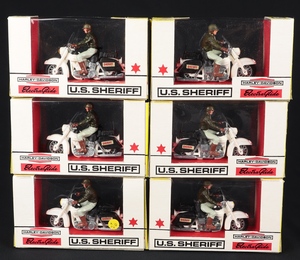 U.S. Sheriff Harley Davidson Motorbikes x 6 in Trade Pack, Britains Models, No. 9692. Mint/boxed. Superb old shop stock item from The Reference Collection. Starting bid £150. Please note that QDT apply 12.5% buyer's commission.