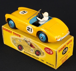 Austin-Healey '100' Sports by Dinky Toys, No. 109. Orange-yellow version. Very near mint/boxed. From The Simon Regis Collection.