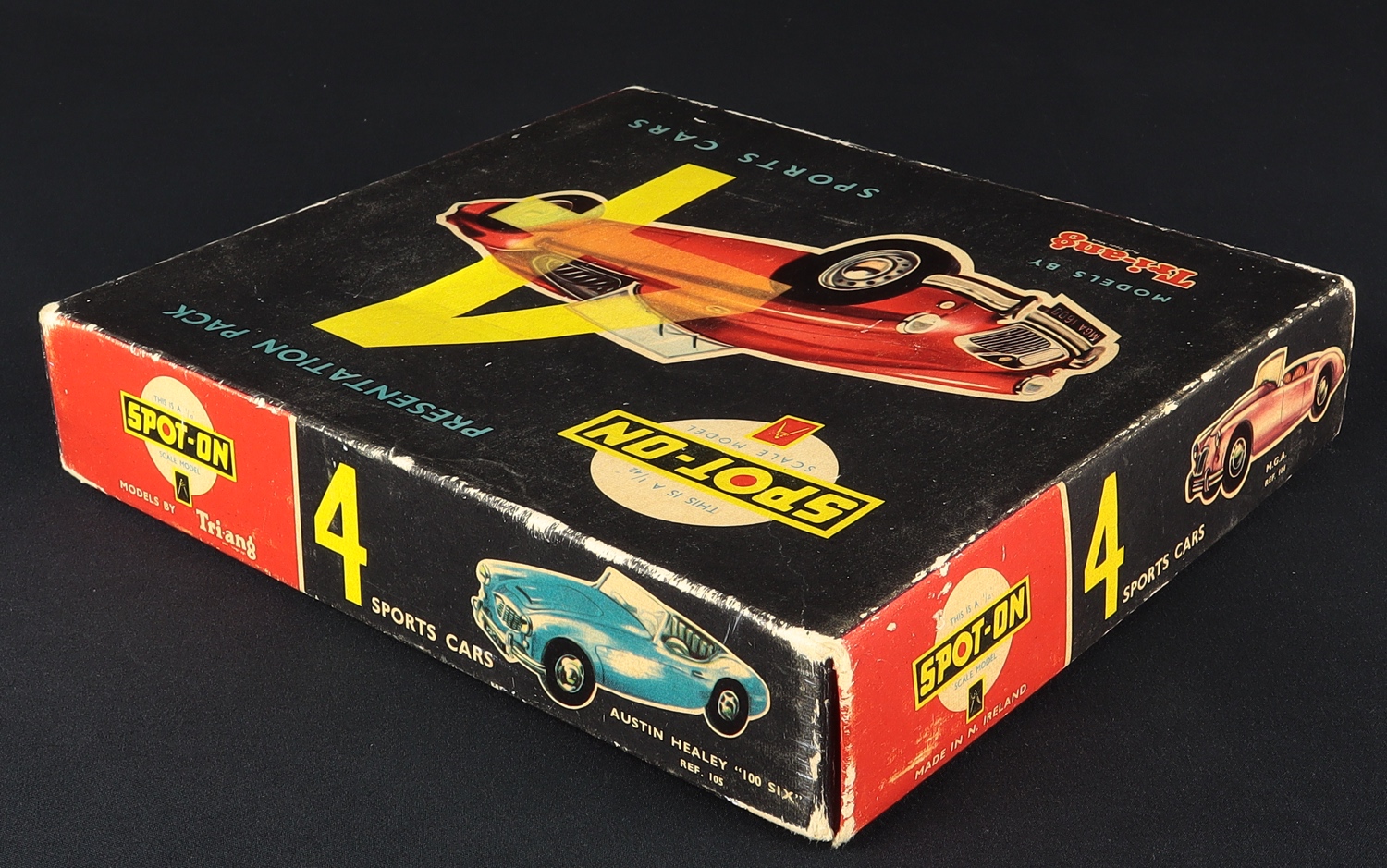 Sports Cars by Spot-On Models, Presentation Set, No 4. Near mint plus- very near mint/boxed. Rare set - and a particularly difficult find in this condition. With complete decorative card insert, individual packing card wedges for cars, tissue wrapping and corrugated card top packing piece. One owner from new. Starting bid £400. Please note that QDT apply 12.5% buyer's commission.