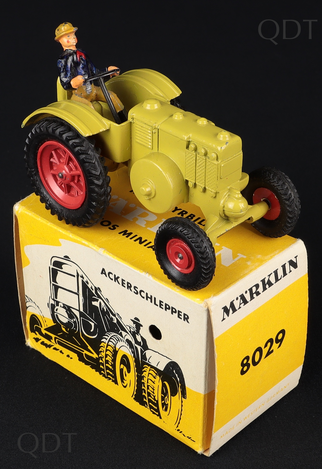 Agricultural Tractor by Marklin Models, No. 8029. Scarce AVOCADO issue. Very near mint/boxed. A First for QDT! Scarce item from The Berlin Collection.