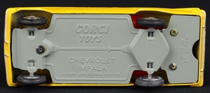 Issued between 1960-63, this desirable Chevrolet model is a difficult find. The matte paint finish is in virtually mint condition. Perfect transfers on both sides, Taxi label on roof. Note the graphite grey aerial – another unusual feature of this model. Suspension is fine on all four flat spun wheels. Displays nicely.