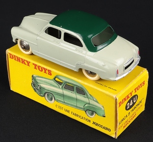 Simca 9 "Aronde" by French Dinky Toys, No. 24U. 2nd type in two-tone green. Scarce. Near mint plus/boxed. From The Fenman Collection.