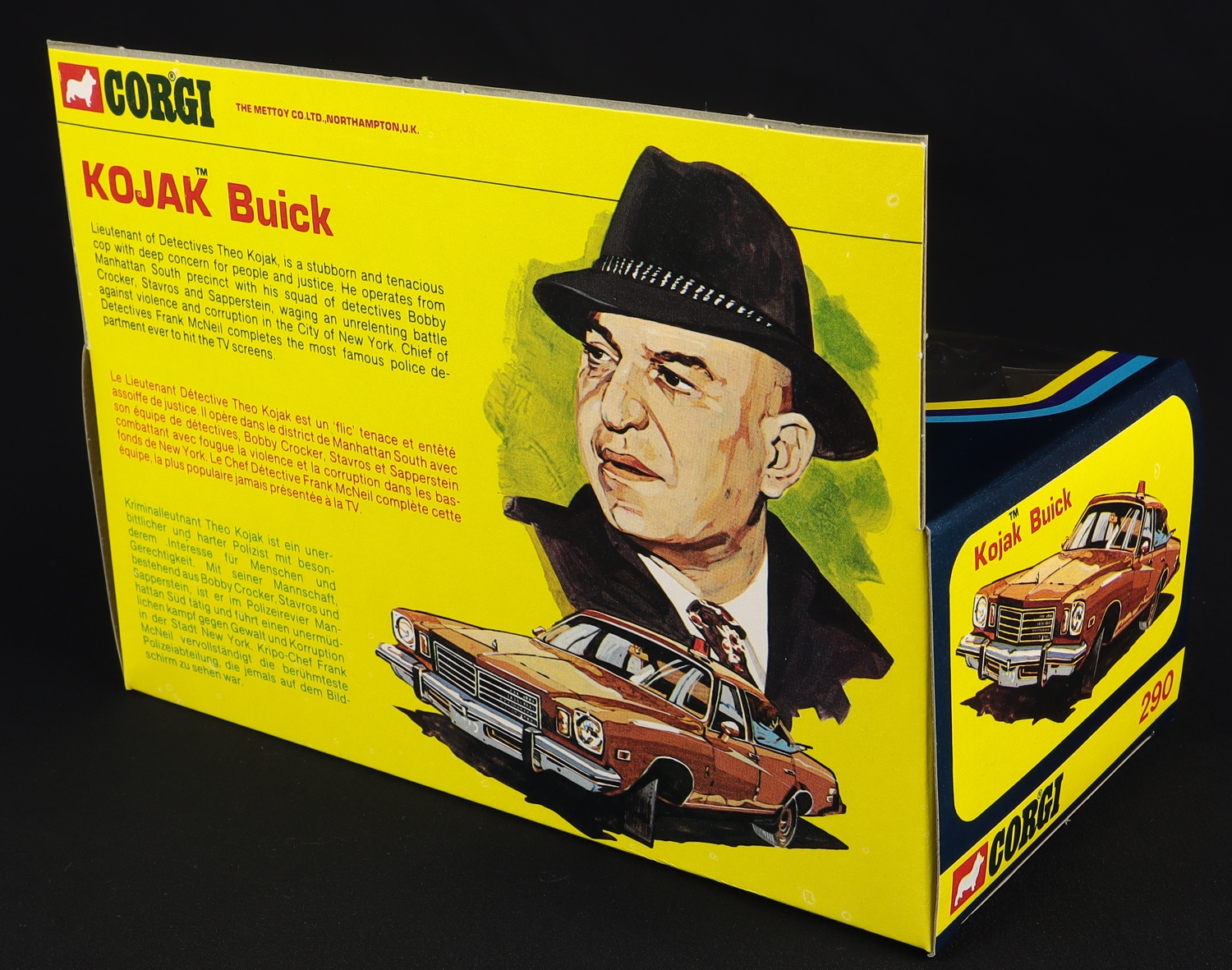 Kojak Buick by Corgi Toys, No. 290. MID-METALLIC BRONZE 'Hatted' version. Assumed mint/boxed (never opened). Just removed from a FACTORY-SEALED TRADE PACK! With both figures of Kojak & Crocker. From The Wesley Lodge Collection. Starting bid £200. Please note that QDT apply 12.5% buyer's commission.