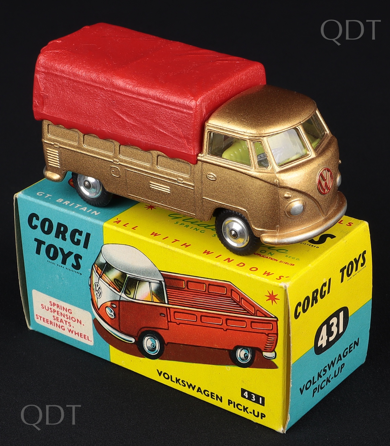 Volkswagen Pick Up by Corgi Toys, No. 431. So rare in GOLD. Very, very near mint/boxed. From The Wesley Lodge Collection. Starting bid £1000. Please note that QDT apply 12.5% buyer's commission.