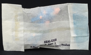 The colourful, header card box with 1:36 scale tag has intact original cellophane. Note there is Swedish print on the box base and "Mettoy Co. Ltd.’ on box reverse. Light crease on box reverse where the header card joins the main body of the box. Light wear besides.