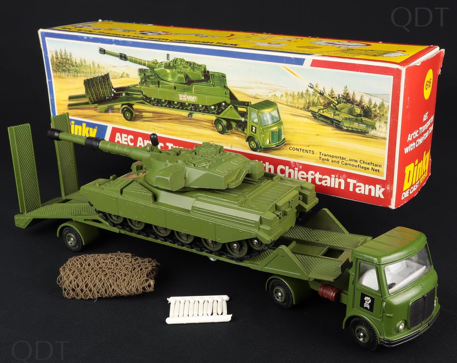 AEC Artic. Transporter with Tank by Dinky Toys, No. 616. Very near mint/boxed. With camouflage net & shells. From The Reference Collection.