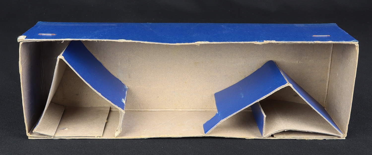 The deep blue lift-off box, however, is one of the most unusual box presentations for any Dinky commercial model. Many collectors may be unfamiliar with this plain, deep blue, lift-off lid box with the Dinky label at one end.