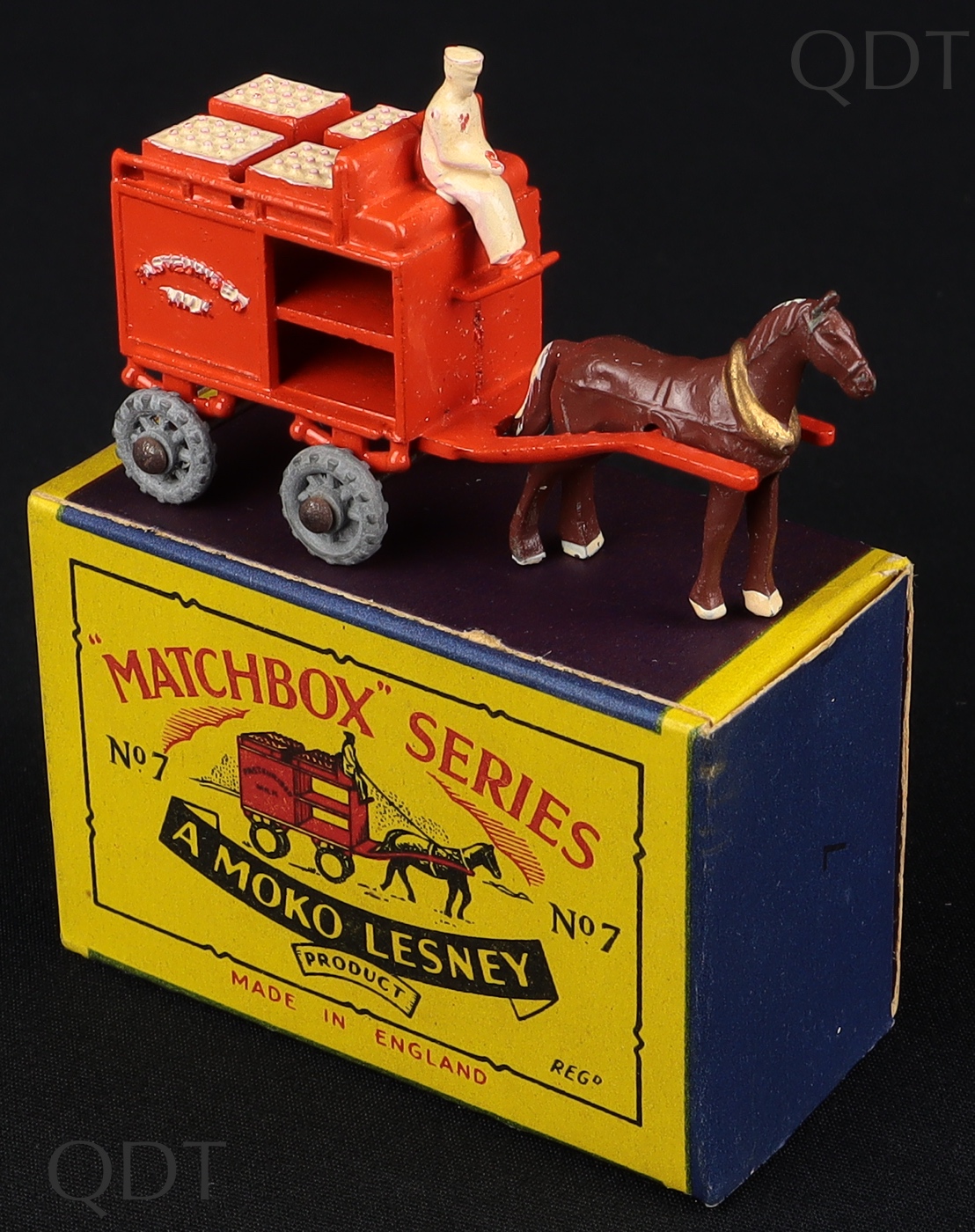 Horse Drawn Milk Float by Matchbox Models, No. 7a. Very, very near mint/boxed. So crisp! From a 25 Year Collection in California. QDT starting bid £75. Please note that QDT apply 12.5% buyer's commission.