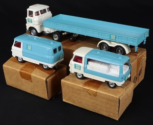 3) Corgi 466 Commer Milk Float in very, very close to mint condition. Spring suspension and bright Co-op labels. Complete with original plain brown card wrap-around box. Light wear.