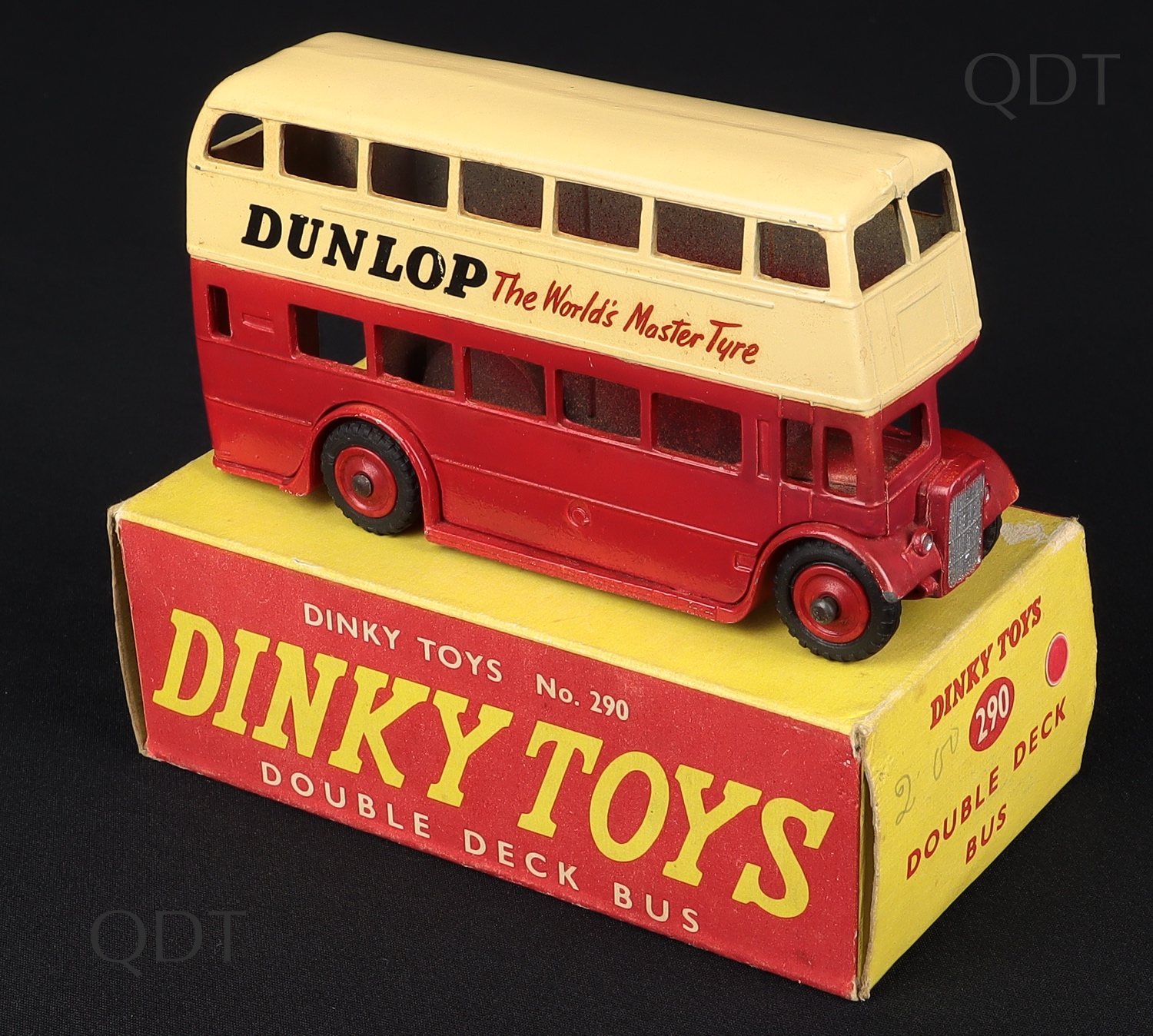 Double Deck Bus 'DUNLOP' by Dinky Toys, No. 290. Near mint plus/boxed. Red plastic wheels. From The 25 Year Collection in California.