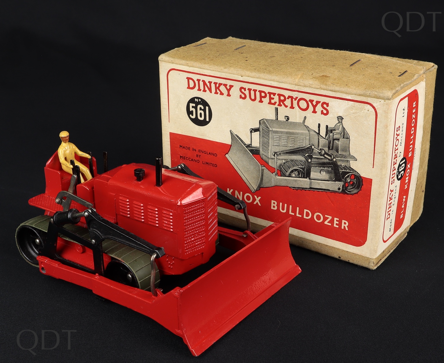 Blaw Knox Bulldozer by Dinky Toys, No. 561. Red with green tracks & black rollers. Very near mint/boxed. In early buff box with red paper label & packing. From The Reference Collection.