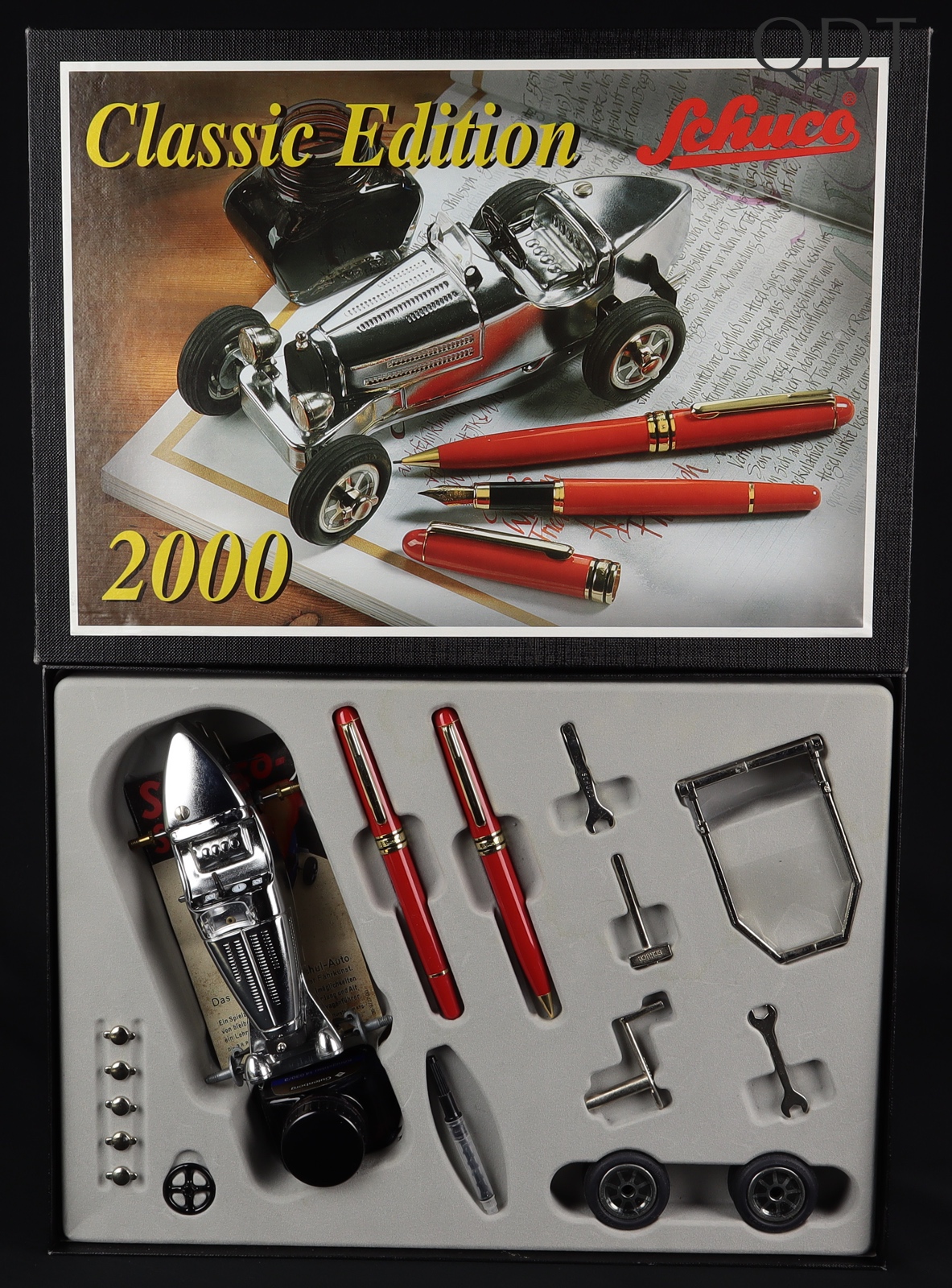 Bugatti Construction Gift Set by Schuco Models, Classic Edition 2000, No. 01741. Mint/boxed, with all accessories, Certificate and leaflet. Packing & over-sleeve. Scarce set from The Heart of England Collection. Starting bid £75. Please note that QDT apply 12.5% buyer's commission.