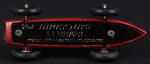 This French Dinky Ferrari racer is in all original condition with a deep red lustrous original finish, white driver and complete racing number 1. Later issue with cross-hatching on the grille. Bright spun hubs. Obviously in unplayed-with condition. Bright baseplate. Looks as if it has barely been handled with none of the expected marks head-on or at the body lines.