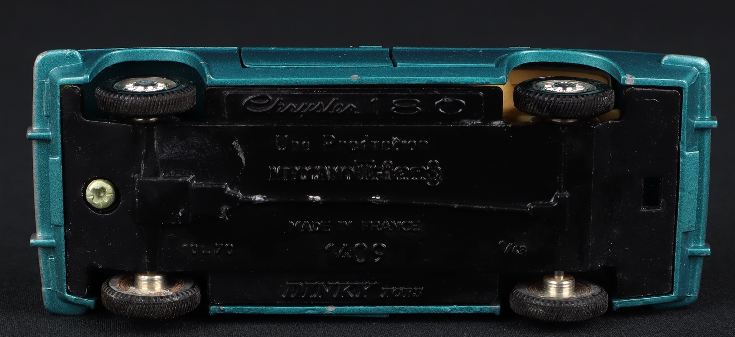 Chrysler 180 by French Dinky Toys, No. 1409. Turquoise. Very near mint/boxed. With still-sealed number plates and road sign in packet, leaflet. From The Berlin Collection.