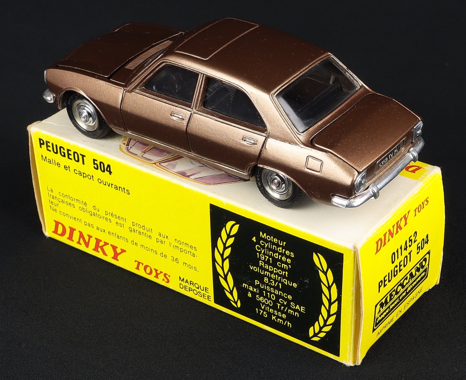 Peugeot 504 by French Dinky Toys (Spain), No. 0114520. Bronze issue. Very, very near mint/boxed. From The Heart of England Collection.