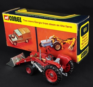 Massey-Ferguson 165 Tractor with Shovel by Corgi Toys, No. 69. Very near mint/boxed. Rare find in the WINDOW BOX. From The Wesley Lodge Collection.