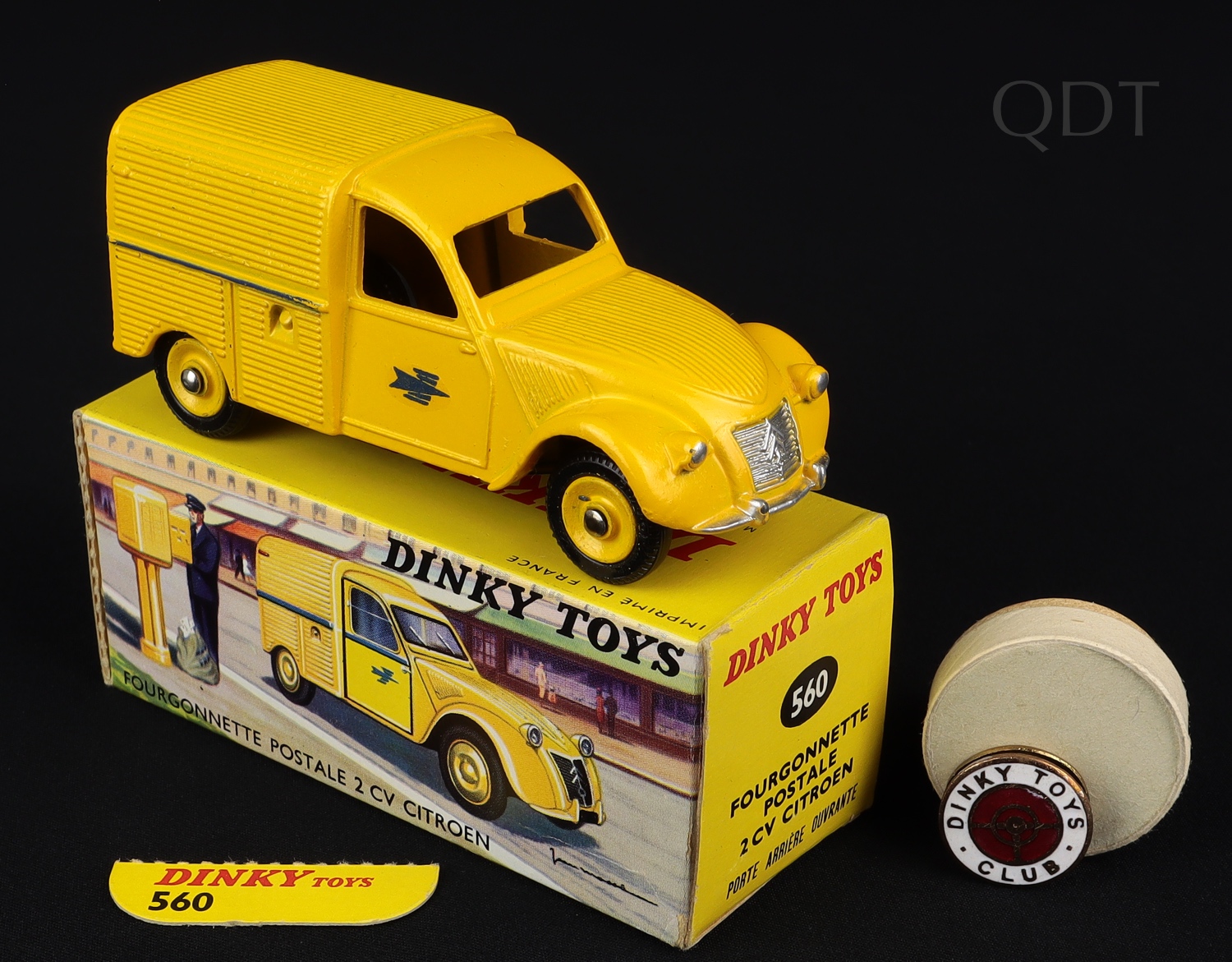 Citroen 2CV Postal Service Van by French Dinky Toys, No. 560. Very near mint/boxed . With late issue DUNLOP tyres. With FRENCH DINKY LAPEL BADGE. From The Swiss-French Collection.